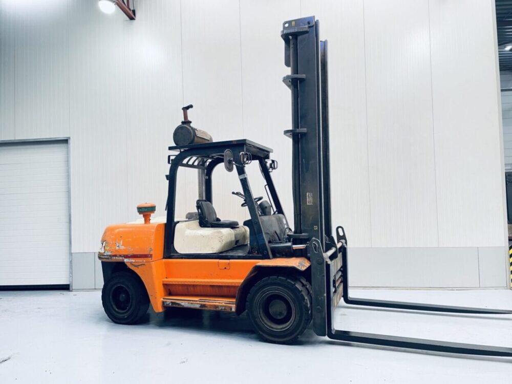 - Вантажопідйомність: до 7000 кг — ідеально підходить для обробки важких вантажів, таких як металеві конструкції, будівельні матеріали та обладнання.