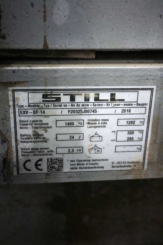 Вантажопідйомність: Still EXV-SF 14 має вантажопідйомність до 1400 кг (1,4 тонни). Це дає змогу штабелеру справлятися з перевезенням різних вантажів на короткі та середні відстані.