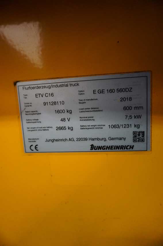 - Потужність і продуктивність: Завдяки потужному електродвигуну Jungheinrich ETV C 16 забезпечує високий рівень продуктивності та надійності в роботі.