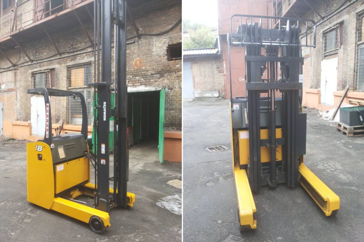 Висотний штабелер Komatsu FB18RL-14 – надійний річтрак з електричним приводом для ефективного підйому та переміщення вантажів на висоту.